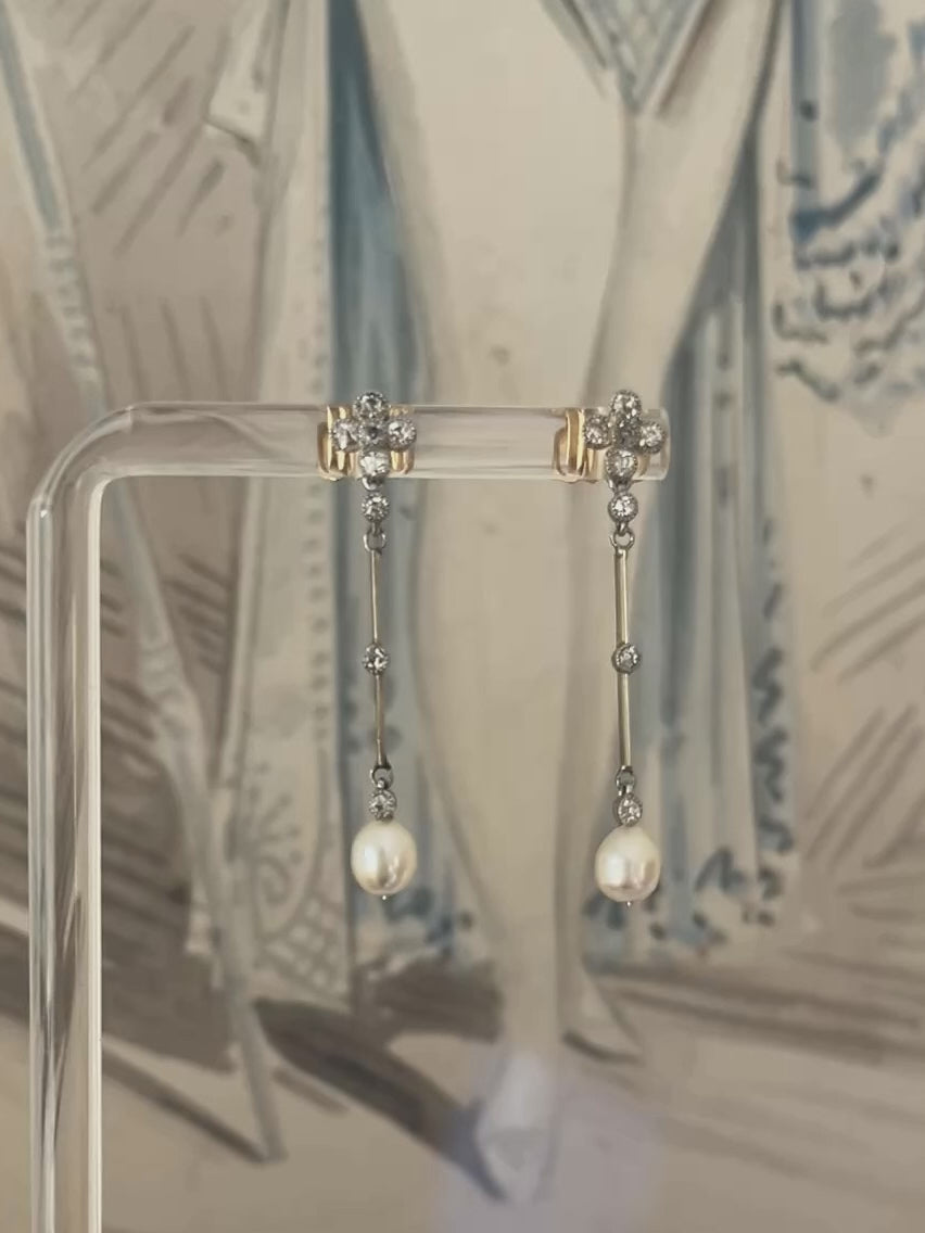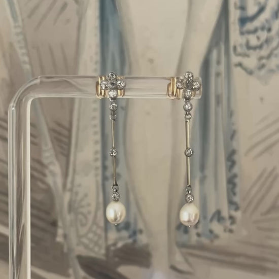 Edwardian Platinum, Natural Pearl & Diamond Drop Earrings