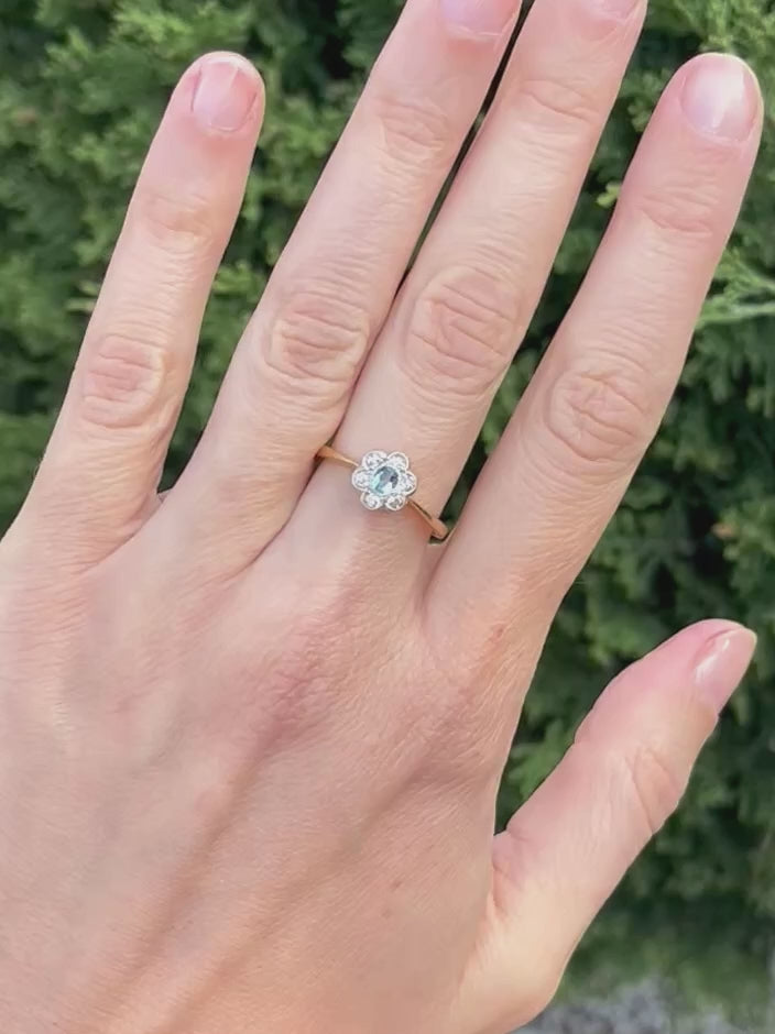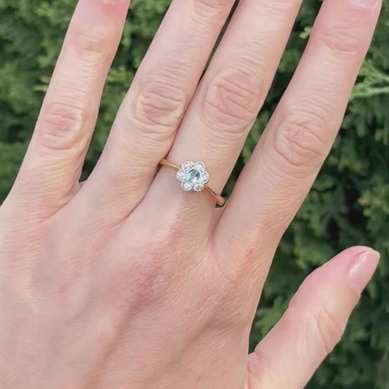 Edwardian Platinum, Gold, Aquamarine & Diamond Daisy Cluster Ring